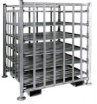 Контейнер для посола и хранения сыра Контейнер сборного типа, выполнен из стали 12Х18Н10Т. По периметру расположены съемные решетки. Количество полок и расстояния между ними могут изменяться в соответствии с производственной необходимостью, согласно приведенным ниже техническим характеристикам. Полки могут выдвигаться из контейнера по специальным направляющим. В нижней части расположены два прямоугольных профиля для вил погрузчика. Особенности конструкции стеллажей позволяют располагать их в три яруса. Габаритные размеры: L = 1155 мм; В = 965 мм; Н = 1250 мм
