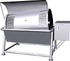 Установка прессования и охлаждения творога УПТ (исполнение – «пьяная бочка») Смещение оси вращения трубчатого барабана установки, позволило мешочкам с творогом совершать не только вращательное перемещение вокруг оси установки, но также и возвратно-поступательное движение в горизонтальном направлении. Производительность установки УПТ-"пьяная бочка", при этом, выше на 25-30 % чем в базовом исполнении. Одновременно повышается качество получаемого творога за счет дополнительного уплотнения его структуры.