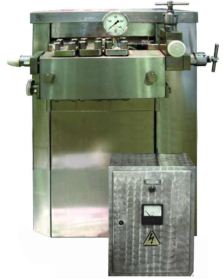 Гомогенизатор представляет собой многоплунжерный насос высокого давления с гомогенизирующей головкой. Привод осуществляется от электродвигателя с помощью клиноременной передачи. Процесс гомогенизации осуществляется за счет прохода продукта под высоким давлением и с большой скоростью через гомогенизирующую головку (в щели между притертыми клапаном и седлом, соединенных между собой каналом). Давление в гомогенизаторе регулируется вращением винтов, изменяющих размер щели между клапаном и седлом. При этом, на первой ступени устанавливают необходимое для конкретного продукта давление гомогенизации, а на второй - рабочее давление.