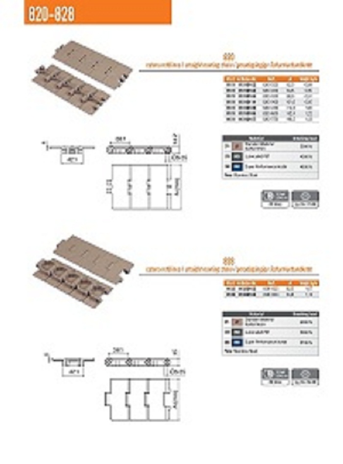 Цепь пластичатоя серии 820-828 пластиковая для конвейеров