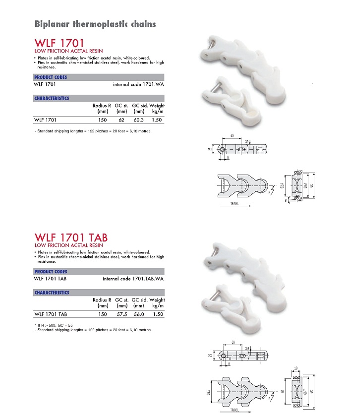 Ящичная цепь WLF 1701 предназначена для установки на конвейерах