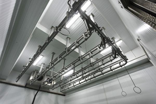Весы монорельсовые Предназначены для контрольного взвешивания туш, полутуш и отрубов непосредственно на подвесном пути, при их передаче с одного участка мясоперерабатывающего предприятия на другой, а также при их передаче на хранение, отгрузку и так далее. |